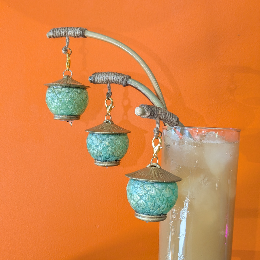 These one-of-a-kind tiki swizzles feature a dangling nautical orb with a light-up feature - and yes, you can change the batteries! This swizzle currently only comes in green.